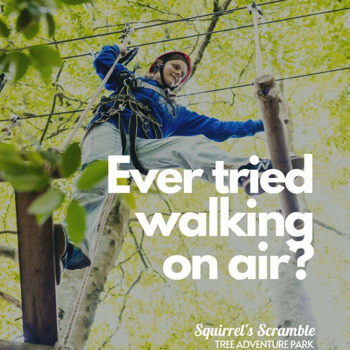 Squirrel’s Scramble Tree Adventure Park offers an exhilarating outdoor experience set within the stunning grounds of Killruddery Estate, Bray, Co. Wicklow. Perfect for families, teens and adults seeking adventure, this action packed treetop challenge invites you to climb, balance and soar high above the forest floor.
